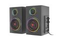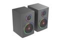 Das elegante schwarze Design macht die Lautsprecher extrem vielseitig und ergänzt jeden Gaming-Stand erfolgreich. Das matte Carbon-Finish in Kombination mit der phänomenalen Hintergrundbeleuchtung ist ein echter Hingucker und lässt dich stilvoll gewinnen.